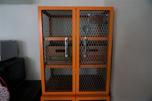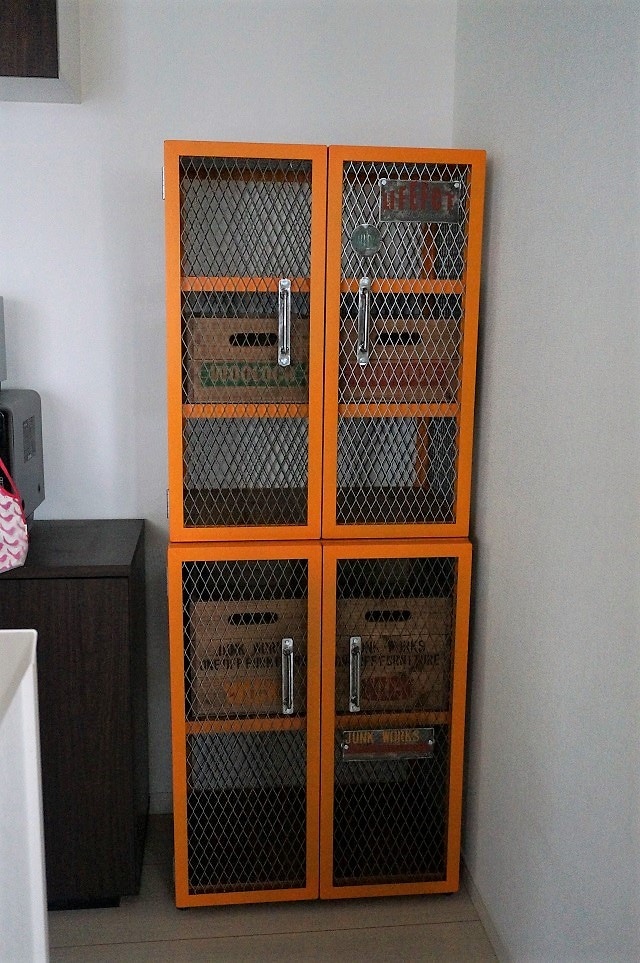鉄網×鉄×木(オレンジ)棚・両扉 上下