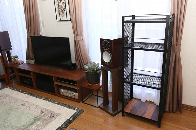 一番下の棚以外は網の棚とし、各棚には落下防止用の鉄棒を設置しました。